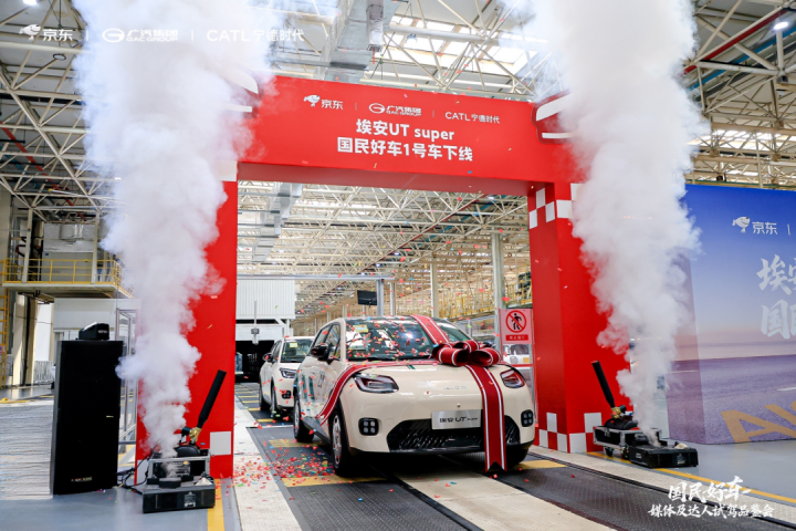 11月5日上午,伴随一台全新车型缓缓驶出广汽埃安长沙智能生态工厂生产线,标志着由零售、制造与能源三大领域的代表企业京东、广汽集团、宁德时代联合推出的“国民好车”——埃安UTsuper1号车正式迎来下线。这也是该款新车首次对外完整展示外观设计、制造工艺、电池技术及换电过程等细节。